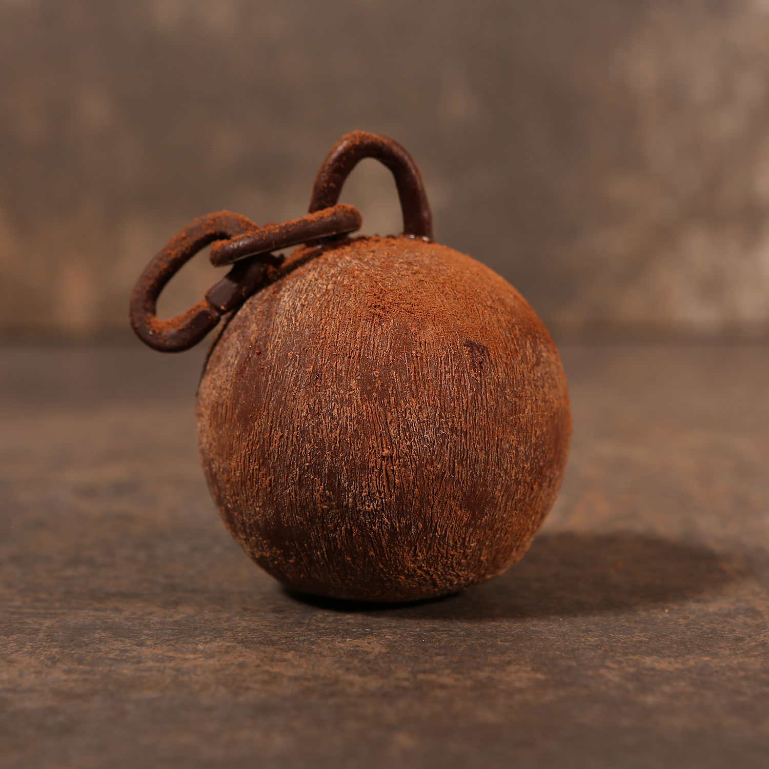 Mais la symbolique et l’histoire étaient trop belles pour que je décide de créer une pâtisserie en forme de boulet qui sous son aspect métallique et rouillé renferme des assemblages onctueux et délicieux qui nous invitent au rêve et au voyage.