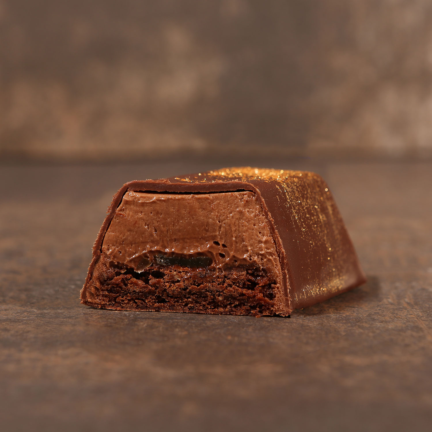 Sous la forme sobre et épurée de ce lingot, se cache un cœur puissant qui ne laissera personne indifférent. Cœur sensible s’abstenir, ce dessert est pour les passionnés de saveurs intenses et les contrastes innovants, la fraîcheur du gingembre opposée à la force d’un chocolat noir pur intense vous feront voyager en terre inconnue.