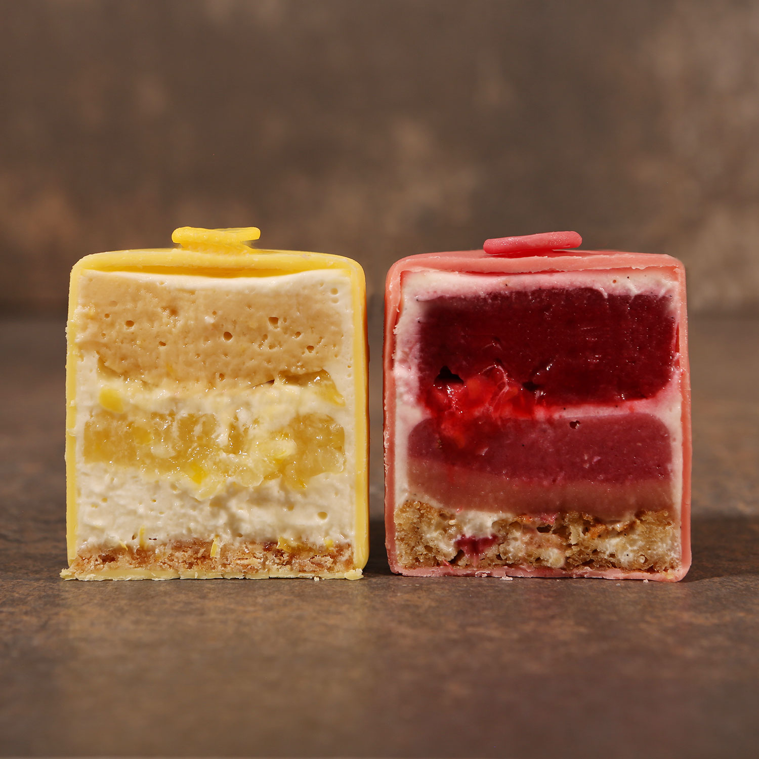 Les Demoiselles étaient deux, donc je ne pouvais pas résumer tout ce que je souhaitais raconter dans un seul dessert, c’est donc deux desserts en un, la Demoiselle Rose pour la douceur et la Demoiselle Jaune pour la vigueur. À déguster seul, mais par deux, l’acidité et la douceur, deux saveurs opposées et en même temps tellement complémentaires pour un voyage en 1967, l’année de naissance de mes parents